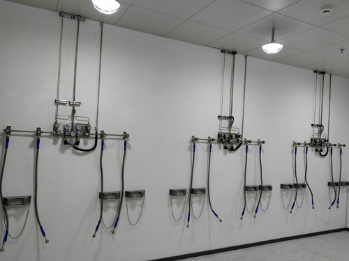 2.氣瓶間獨立設置立多次調壓的面版,各舉二托一的面版帶吹掃銅不銹鋼的面版4套。
