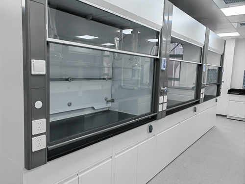 2)燈飾:采取扇形高效孔燈,都隱藏于頂板上,不與排風系統箱內實驗操作汽體隨時遇到,易更改,色彩飽和度仍然足夠實驗操作需要。